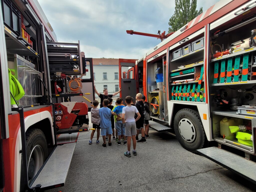 Am 6.9.gab es viel Spannendes und Interessantes für die Kinder der 4.Klasse bei der Feuerwehr in Hirtenberg zu entdecken und zu erfahren.Es hat den Kindern große Freude bereitet und so manche Schülerin und so mancher Schüler denkt daran,ebenfalls zur Feuerwehr zu gehen.Eine tolle Art,sich sinnvoll in der Freizeit zu engagieren! Vielen herzlichen Dank an Herrn Wallisch sowie an Bianca, Stefan,Jan und Thomas,die sich an diesem Tag für die Kinder so viel Zeit genommen haben!