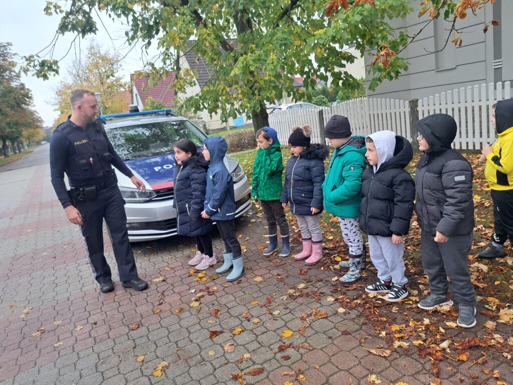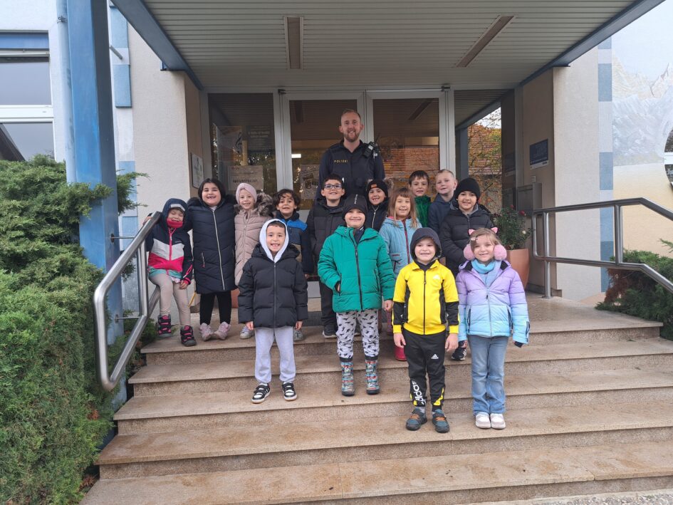 Am 23.Oktober kam die Polizei zu uns in die 1. Klasse. Die Aufregung war groß. „Ein echter Polizist ist da“, meinte Maxi voller Freude. Erst wurde in der Theorie spielerisch dargestellt, wie sich die Kinder beim Überqueren der Straße sichtbar machen. Anschließend gingen wir auch noch raus, um das Gelernte praktisch umzusetzen. Es war ein toller Vormittag mit viel Action und Spaß.