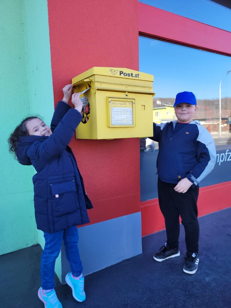 Die 2. Klasse gestaltete Postkarten und verschickte diese an ihre Familien!