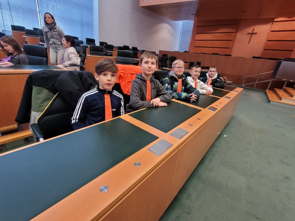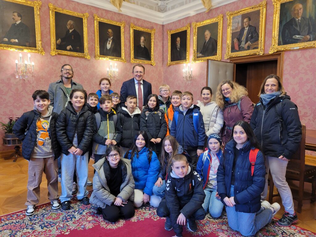 Am 1.4. besuchte die 4. Klasse die Landeshauptstadt St. Pölten. Am Klangturm stiegen wir über 280 Stufen in luftige Höhen, im niederösterreichischen Landtag übten wir uns in der Rolle von Abgeordneten. Wir besuchten das niederösterreichische Museum und ließen uns von der St. Pöltner Altstadt verzaubern. Im Rathaus durften wir in die barocken Amtsräume von Bürgermeister Mag. Matthias Stadler blicken, welcher uns sehr eindrucksvoll und geduldig die Besonderheiten seines Amtsraumes näher brachte. Herzlichen Dank, dass wir Sie besuchen durften, Herr Bürgermeister!