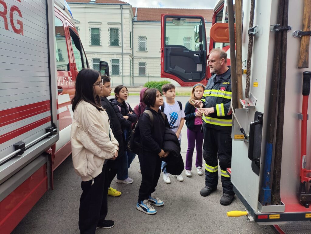 Am 16. Mai durften die beiden dritten Klassen der Volkschule Hirtenberg die freiwillige Feuerwehr besuchen. Hier wurden die Fahrzeuge inspiziert, Uniformen und Werkzeuge begutachtet und sogar alte Utensilien aus dem hauseigenen Feuerwehrmuseum erklärt. Besonders interessierten sich die Schüler/innen für die Feuerwehrjugend und die Einsätze.