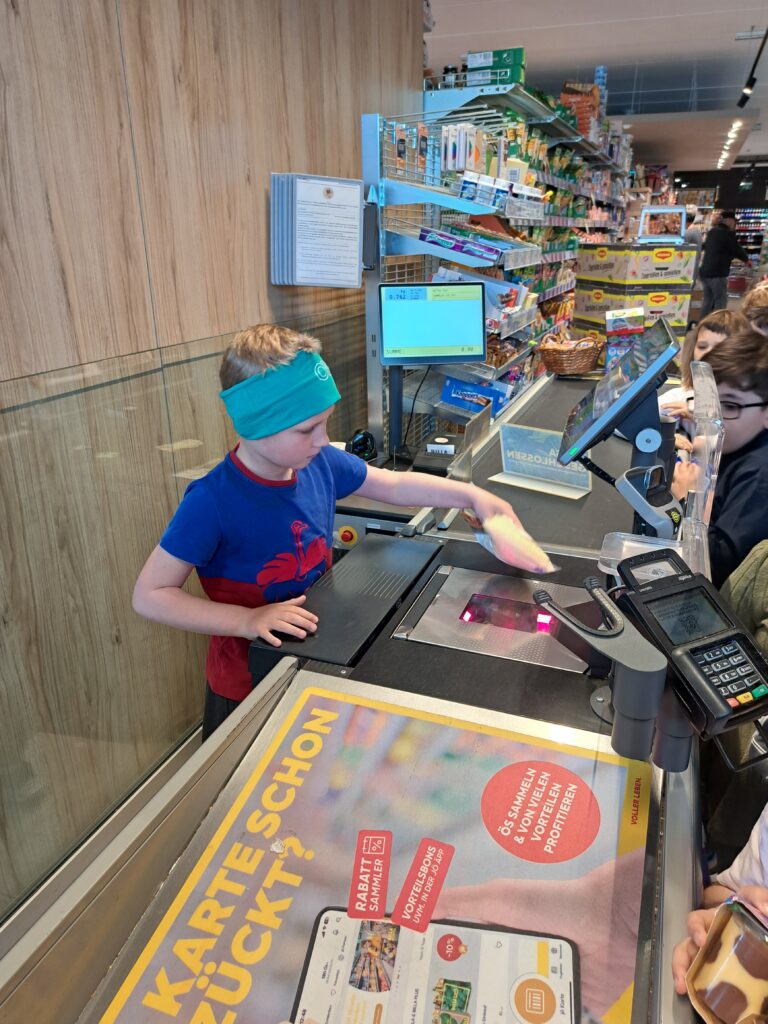 Am 24. April, durften die Kinder der 1. Klasse den Billa in Enzesfeld besuchen. Herr Toraman war so nett und hat uns alles Wichtige gezeigt. Spielerisch erlebten die Kinder den Alltag der Mitarbeiter. Sie durften Lebensmittel über die Kassa ziehen, die Kühlkammer erkunden, köstliche Früchte naschen, aber das Highlight war, selbst ihr eigenes Weckerl zu belegen und dann zu verspeisen. Es war wirklich ein ganz toller und vor allem spannend, informativer Vormittag, vielen Dank an den Billa Enzesfeld.