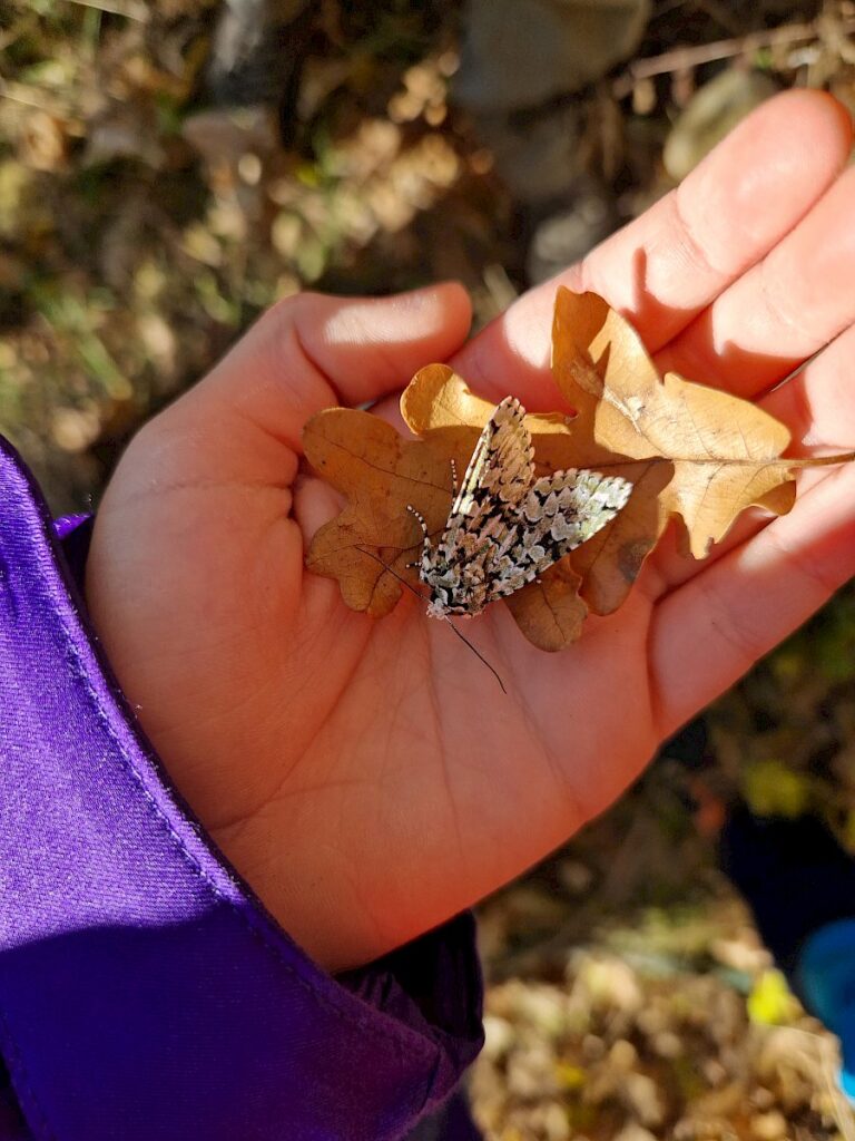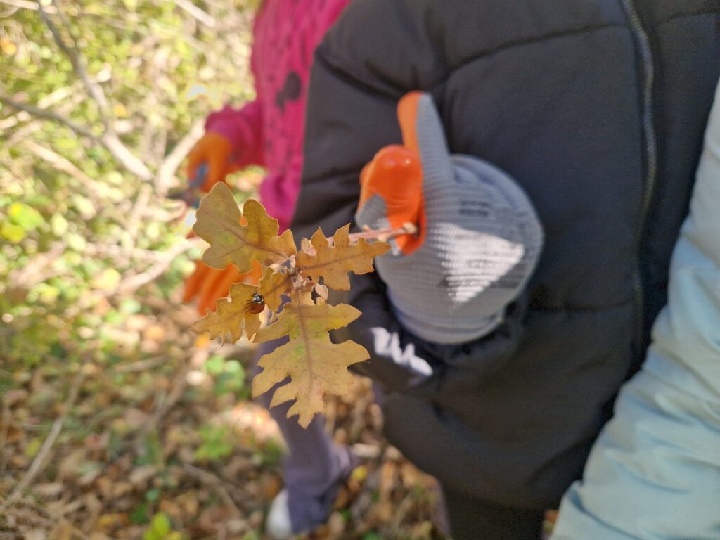 Mit dabei waren drei Klassen (die 3. Klasse, 4a und 4b) mit insgesamt 42 Kindern. Nach einer spannenden Einführung zum Thema Trockenrasen durch unsere Naturpädagoginnen Bianca, Jasmin und Valeria machten sich die jungen Landschaftspfleger:innen ans Werk: Mit großer Motivation entfernten sie Liguster und kleine Gehölztriebe in einem stark verbuschten Bereich. Dabei entdeckten sie auch einige faszinierende Tierarten – darunter Marienkäfer, eine Smaragdeidechse (Lacerta viridis), eine Äskulapnatter (Zamenis longissimus), eine Ritterwanze (Lygaeus equestris) und die Grüne Eicheneule (Griposia aprilina). Bei letzterer handelt es sich um einen Nachtfalter aus der Familie der Eulenfalter, der vor allem in Eichenwäldern und an lichten Waldrändern vorkommt.